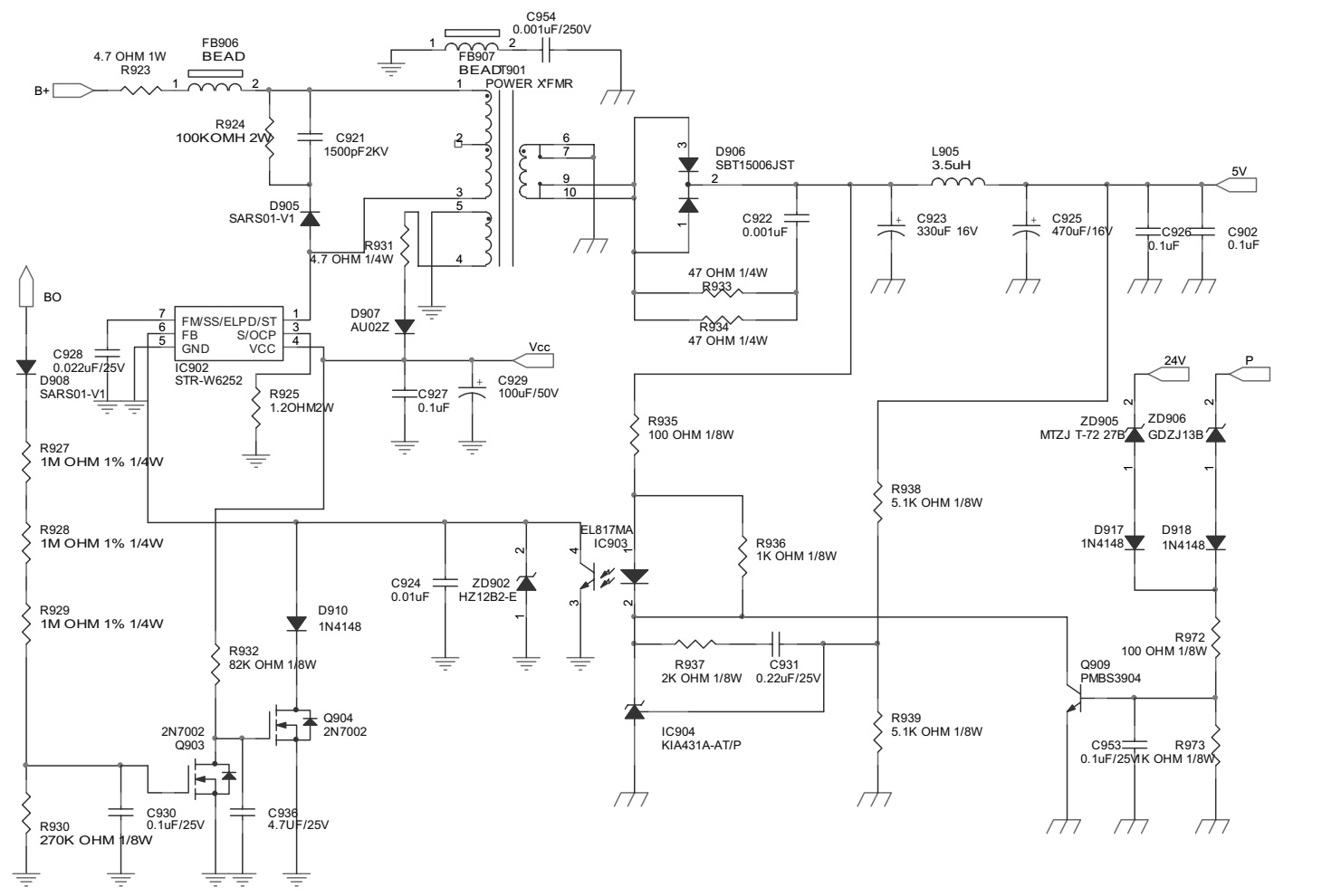 Changhong LT52510F - AOC L52BS83FU -SMPS SCHEMATIC. 715T2919-1. Components: IC901: UCC28019DR-IC902: STR-W6252-IC905: L6599D